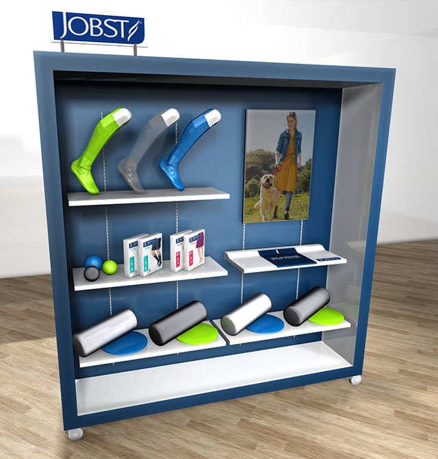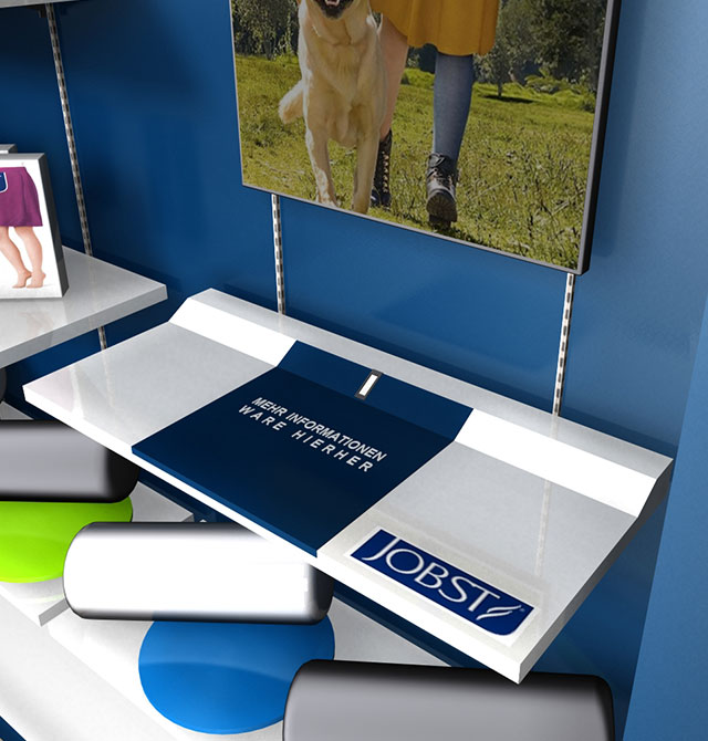Das neue BSN JOBST Digitale Infoterminal gibt Endkunden einen interaktiven Einblick in die JOBST Produktwelt. Alle Artikel sind mit NFC Chips versehen, die an einem digitalen Board ausgelesen werden können. Sobald der Chip gescannt wird, zeigt z. B. ein Bildschirm die dementsprechenden Produkt-Benefits an. Kunden können so direkt am Verkaufsregal wichtige Informationen wie technische Beschaffenheiten, Farbvarianten, etc. erhalten – ohne sich durch aufwendige Produktbeschreibungen lesen zu müssen. Dies spart Zeit und macht den Einkauf effizienter und angenehmer..
